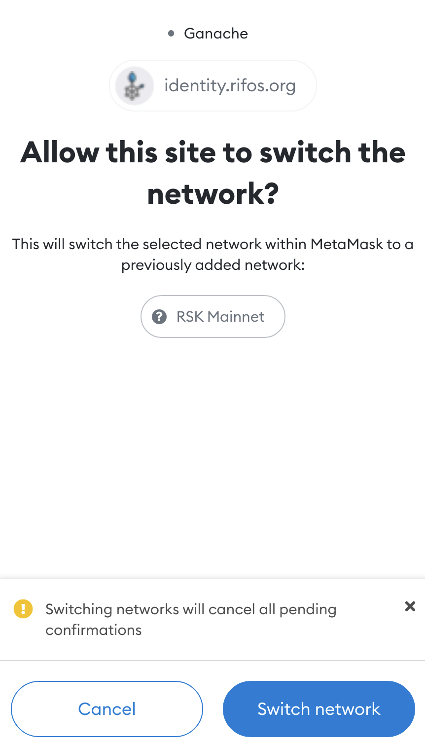 You will be presented with a popup from MetaMask, which essentially is asking you whether you trust RIF Identity Manager.