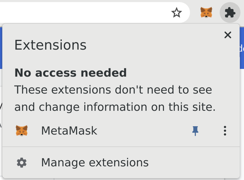 • Click the pin icon next to MetaMask to ensure it is always visible.